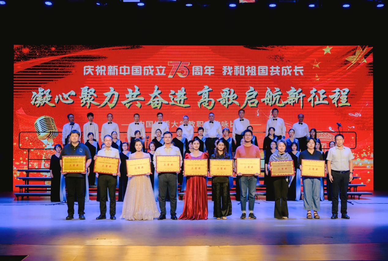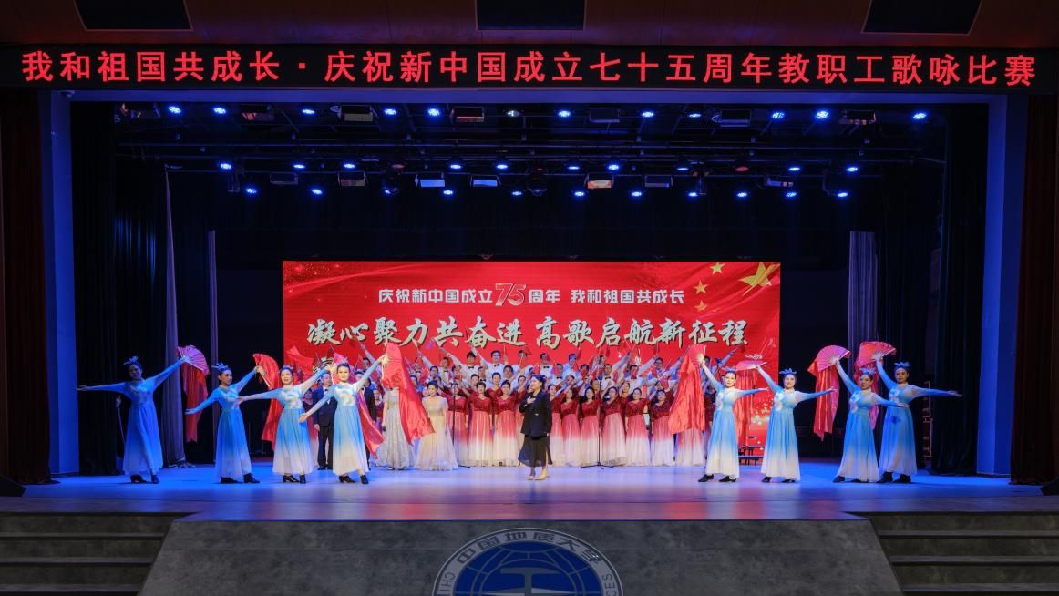 (通讯员 周玲 摄影 王小林 )9月26日,我校盛大的“我和祖国共成长•庆祝新中国成立七十五周年教职工歌咏比赛”在南望山校区的弘毅堂圆满落下帷幕。在此次比赛中,我院以《走向复兴》为参赛曲目,以昂扬奋进的合唱+庄重豪迈的朗诵+鼓舞人心的舞蹈组合演绎获得专家肯定,荣获三等奖,展现了我院教职工们团结一心、积极向上的精神风貌。