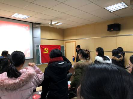 2018年12月29日下午14:00,我院2018级管理班硕士研究生党支部于学校北区MBA楼106教室开展了主题为“学习习近平总书记在庆祝改革开放40周年大会上的重要讲话精神、《中国共产党支部工作条例(试行)》及学习“弘扬爱国奋斗精神””的主题党日活动。本次活动由支部组织委员伍青青同志和宣传委员程仕菊同志主持,支部应到党员33人,实到26人,事假7人,有5名积极分子参与学习。
