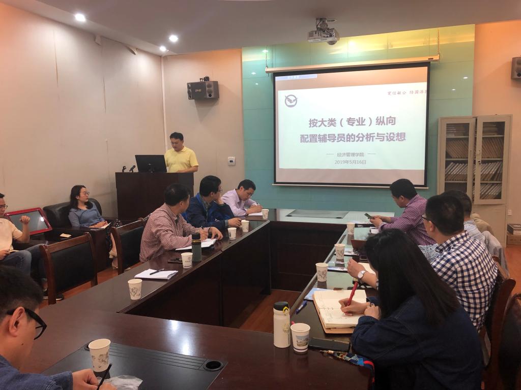 学院党委书记杨昌锐结合试点工作和新校区搬迁汇报了前期的筹备情况。院党委副书记沈波就学院按大类(专业)纵向配置辅导员的分析与构想做了专题汇报。与会的amjs澳金沙门教师发表意见,一致认为辅导员纵向设置是开展“三全育人”的重要路径,有助于提升学院本科生人才培养质量。邬海峰、严嘉、朱荆萨分别就分管工作发表看法,表态支持经管学院试点开展辅导员纵向配置的相关工作。