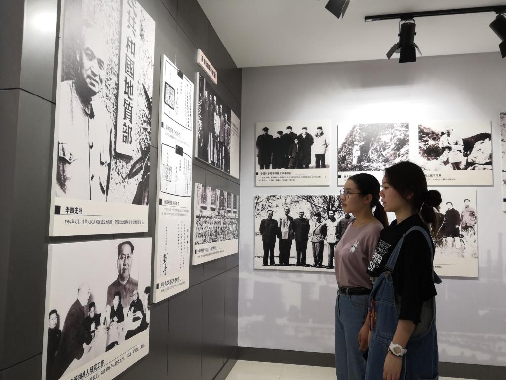 在参观过程中,实习团队还组织了党员同志进行“学习地质前辈,重温入党初心”的主题党建活动,党员同志们在观看展板时主动向同学们讲述感悟体会,宣扬地质前辈高尚的精神品格。