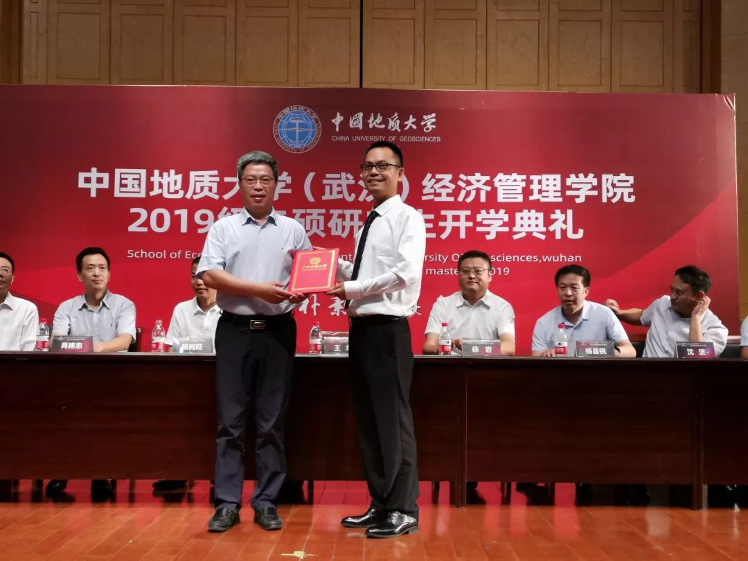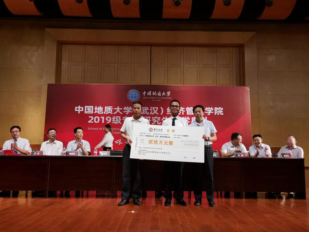 中国MBA联盟副秘书长、地大MBA联合会副主席、MBA校友会副会长、地大第一届专硕联合会主席周正华向母校捐赠20万元。王华副校长为其颁发捐赠证书,杨昌锐书记和杨树旺院长接受捐赠。