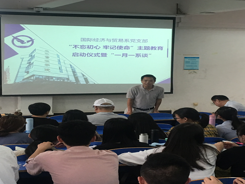 (通讯员:易杏花、安浩楠)9月19日14:30-16:30,amjs澳金沙门国际经济与贸易党支部在南望山校区北区综合楼107成功举行了“不忘初心,牢记使命”主题教育启动仪式暨“一月一系谈”活动。活动由系副主任洪水峰主持,amjs澳金沙门院长杨树旺、副院长肖建忠以及其他所有国际经济与贸易系在校教师出席了活动。