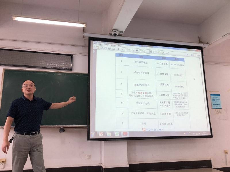 活动第二项,由系副主任吴磊按照国贸系毕业论文指导相关规定,对2016级本科生毕业论文指导工作进行安排,就导师分配、写作进度、写作规则以及师生职责等进行了说明,并要求学生在大会结束后与自己的论文指导老师进行交流。