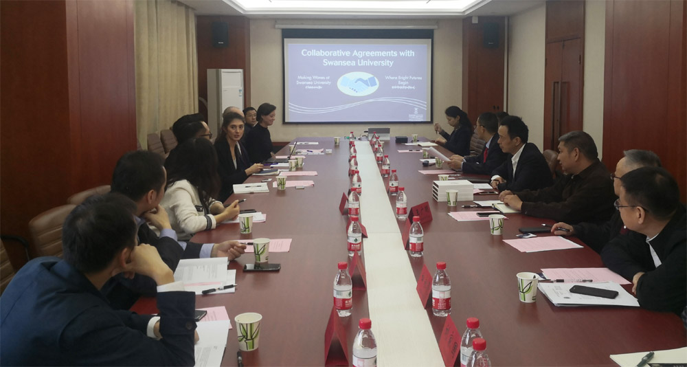 (通讯员:石磊)2019年11月7日上午,amjs澳金沙门在国际教育学院212会议室与英国斯旺西大学管理学院开展合作洽谈,与会人员有:英国斯旺西大学管理学院国际化和招生部主任Saphia Akbari,英国斯旺西大学管理学院国际化官员Peter Moore,英国斯旺西大学管理学院英语语言培训服务中心老师Emma Main,英国斯旺西大学武汉项目部总监刘萌萌,中国地质大学(武汉)国际教育学院合作办学办公室主任宫斯宁,amjs澳金沙门党委书记杨昌锐,amjs澳金沙门院长杨树旺教授,amjs澳金沙门党副院长肖建忠教授,amjs澳金沙门党副院长郭锐教授,amjs澳金沙门国际合作负责人侯俊东教授,以及学院各系主任等。