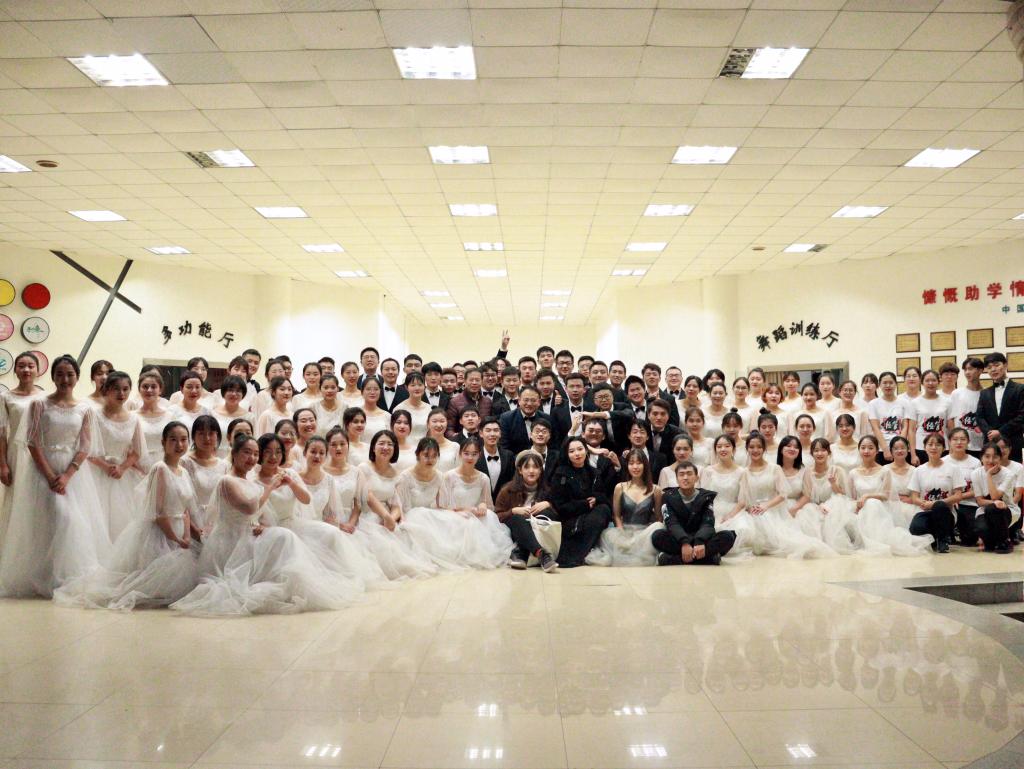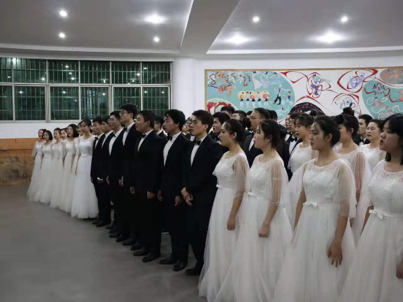 优秀的成绩离不开学院工会、学生会的奉献和全体师生的支持,荣誉的背后渗透了汗水与艰辛。自10月份开始训练以来,每周一、二、四晚间21:00至22:00时,MBA楼208准时起美妙的歌声,临近比赛的后两周更是加班加点,每周排练五天。经过两个月的训练与磨合,师生合唱团终于在弘毅堂的舞台上完成最完美的呈现!