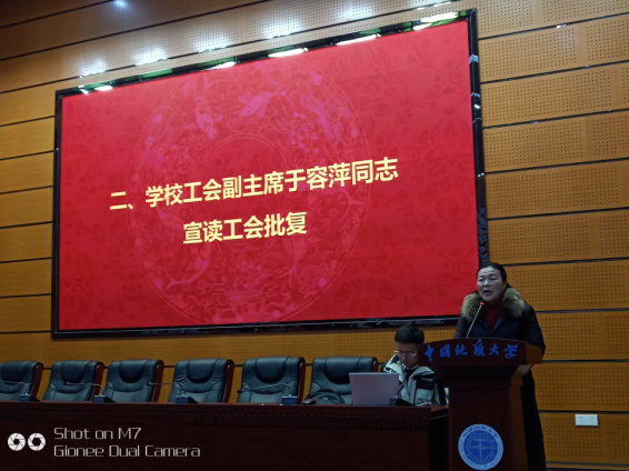 上午,院党委书记杨昌锐同志主持大会开幕式。首先,学校工会副主席于荣萍同志宣读校工会批复,并致辞。然后,全体教职工听取了三大工作报告。院长杨树旺同志作2019年度工作报告和财务工作报告。杨树旺院长的工作报告总结学院2019年度主要工作及成效和薄弱环节,提出学院2020年度工作重点。工会主席王萍同志作2019年度工会工作报告“创学院文化品牌建民主管理制度”。同时,还听取了学院党政领导班子成员的述职报告和学院制度修订情况报告。