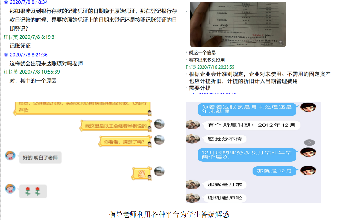 (通讯员 会计系王然)为响应学校及学院关于2020年的暑期实践教学部署,会计系积极准备线上实践教学活动的开展。为保证线上实践教学质量,会计系汪长英、李利华、屈文彬、叶新宇、任芳、王然等指导老师积极开展工作,提前一个月建立会计手工模拟实习课程QQ群,与学生充分沟通,结合课程特色选择合适的教学方法与教学平台。