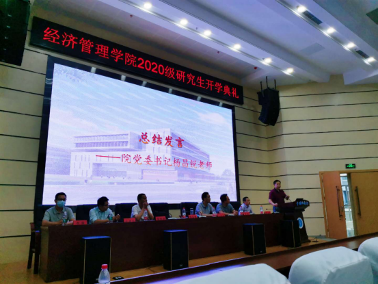 随后发言环节,院长杨树旺老师为新生介绍学校情况,并在演讲中提醒在座学生,要“能吃苦、求卓越、能担当、敢担当”。教师代表侯俊东老师从院训和学院文化出发,对学生提出新要求,要求新生持之以恒、志存高远、厚积薄发。建议学生多角度、多层次、多方位看问题,结合自己情况进行学业规划。18级管科班硕士研究生姜子玉结合自我经验提醒同学们做好未来规划。贾维东同学代表新生表达珍惜当下、把握青春的信念。典礼最后,院党委书记杨昌锐作总结陈词,通过详细解释”经管院16字培养目标“、”经管院五大使命“、”经管院院徽“、”经管院院训“等内容激励新生追求卓越、争取和谐、创造幸福,引导新生对未来进行思考。