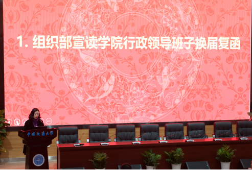 组织部副部长孙莉同志宣读学院行政领导班子换届复函