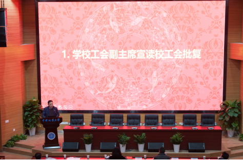 学校工会副主席杨世清同志宣读了校工会《同意amjs澳金沙门第三届教职工代表大会暨工会会员代表大会第四次会议的批复》。