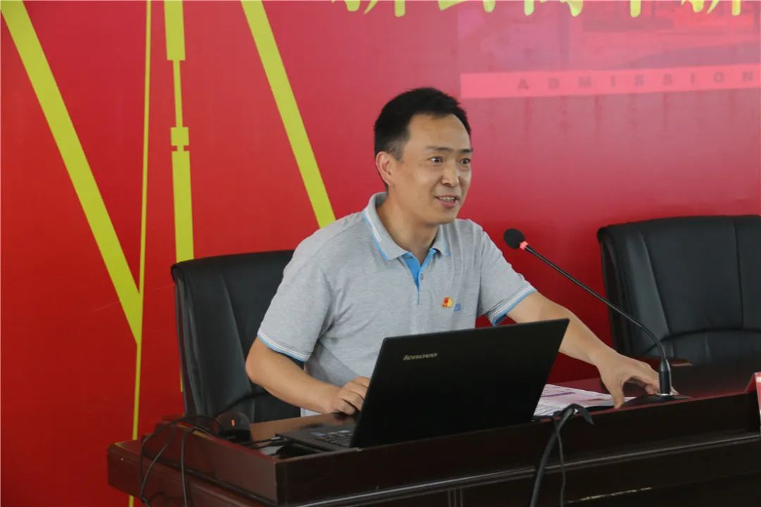 6月18日上午,amjs澳金沙门副院长肖建忠、院党委副书记李少杰、教务科科长石磊一行,赴河南省新县高中开展招生宣讲暨专家报告会活动。报告会在新县高中立德楼五楼报告厅举行,新县高中副校长刘旻、潘勇华,高中二、三年级师生及部分家长代表参加活动。