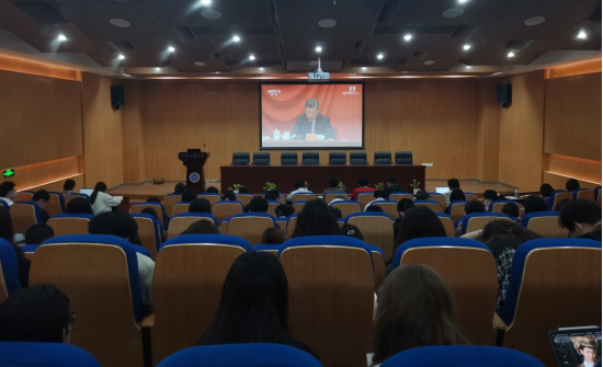 习近平总书记在大会上首先对全体共青团员和各级共青团组织、团干部致以热烈的祝贺和诚挚的问候,并提出时代各有不同,青春一脉相承,广大团员青年要在实现中华民族伟大复兴中国梦的新征程上奋勇前进。在讲话的最后,总书记表达了对共青团的四点殷切希望:第一,坚持为党育人,始终成为引领中国青年思想进步的学校;第二,自觉担当尽责,始终成为组织中国青年永久奋斗的先锋力量;第三,心系广大青年,始终成为党联系青年最为牢固的桥梁纽带;第四,勇于自我革命,始终成为紧跟党走在时代前列的先进组织。习总书记的讲话娓娓道来,给予我院青年无穷力量,指引广大青年将个人理想与伟大的中国梦相连接。在观看直播的过程中,全体成员全神贯注,会场频繁响起雷鸣般的掌声。