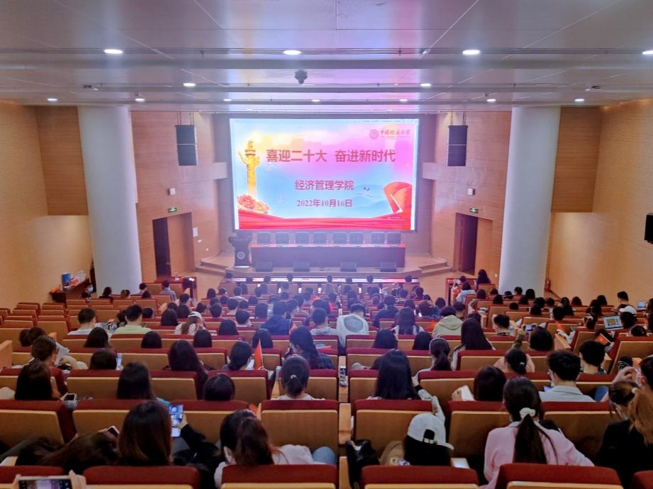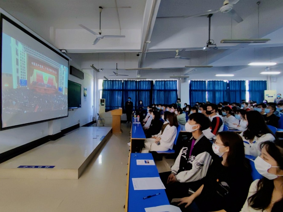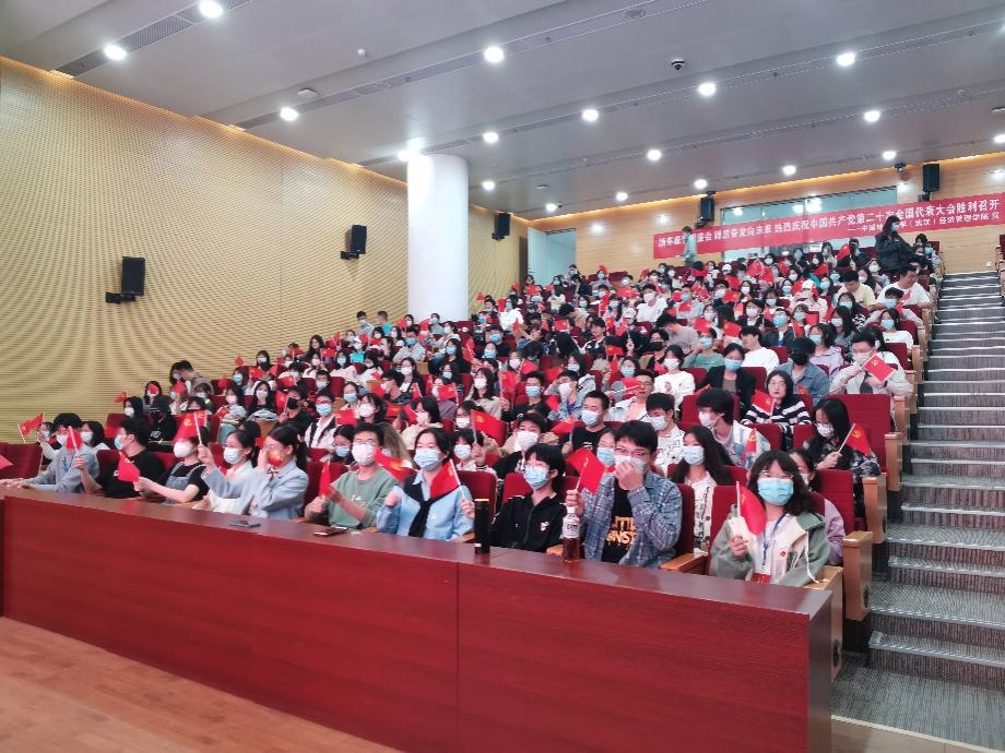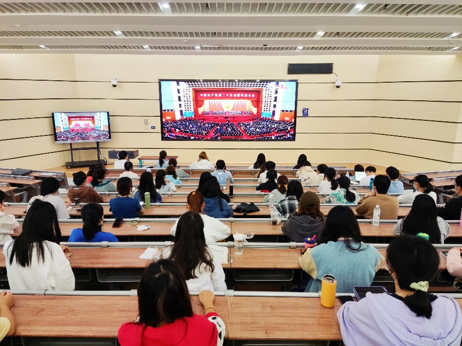 2022年10月16日上午10时,中国共产党第二十次全国代表大会在北京隆重开幕。amjs澳金沙门组织全体师生分别在未来城和南望山校区报告厅、教室等多个会场同步集中收看大会直播,认真学习聆听习近平总书记代表十九届中央委员会向大会所作的报告。学院领导带头,各师生党支部、团学研组织和各班级学生通过多种方式深入学习党的二十大报告,展开热学热议。