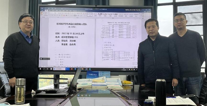 (通讯员:向雅芳 焦弘睿)11月24日上午,根据《中国地质大学(武汉)基层教学组织建设实施意见》和经管学院党字【2022】10号文件精神,区域经济学科教融合创新育人团队第一次研讨活动在经管楼316会议室成功举行。学院党委书记杨昌锐亲临指导,团队成员邓宏兵、白永亮、洪水峰、李金滟老师及学生代表共九人参加会议。