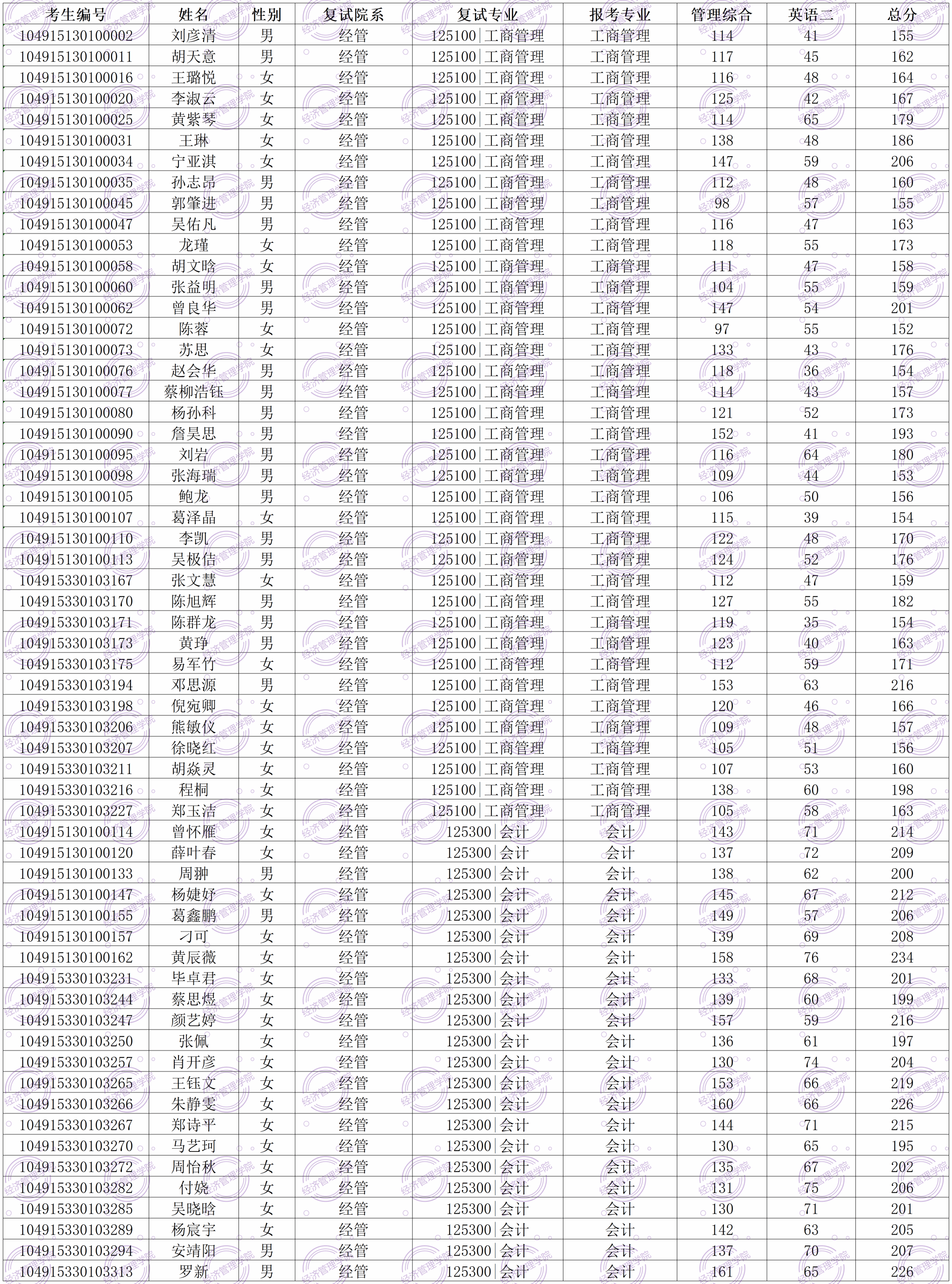 附件一:中国地质大学amjs澳金沙门专硕(MBA、MPAcc)复试名单