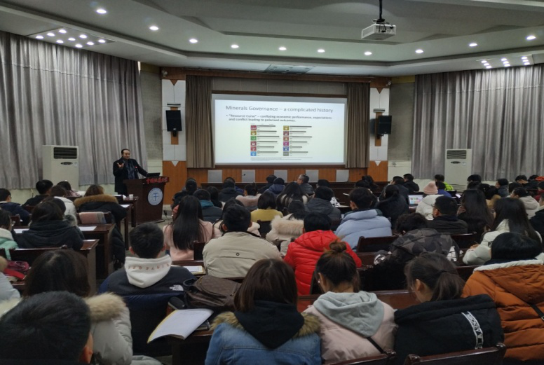1月7日上午,Ali教授为我校师生做了一场题为“国际矿物和材料治理的优先事项”的学术报告。他以其2017年在《自然》杂志上发表的文章为开端,介绍了他从事的科研领域及近期学术活动,并从矿物治理的历史和应对环境、社会风险的冲突转化两个方面,讲述了其对国际矿物和材料治理领域的理解,与大家分享了自己的科研过程及体会。最后,他以对创新中心和公私合作伙伴关系、地球科学治理和科学外交、地质公园、矿产资源供应的安全性等重点领域中的问题进行了讨论。在互动环节,与会师生与Ali教授进行了积极交流。