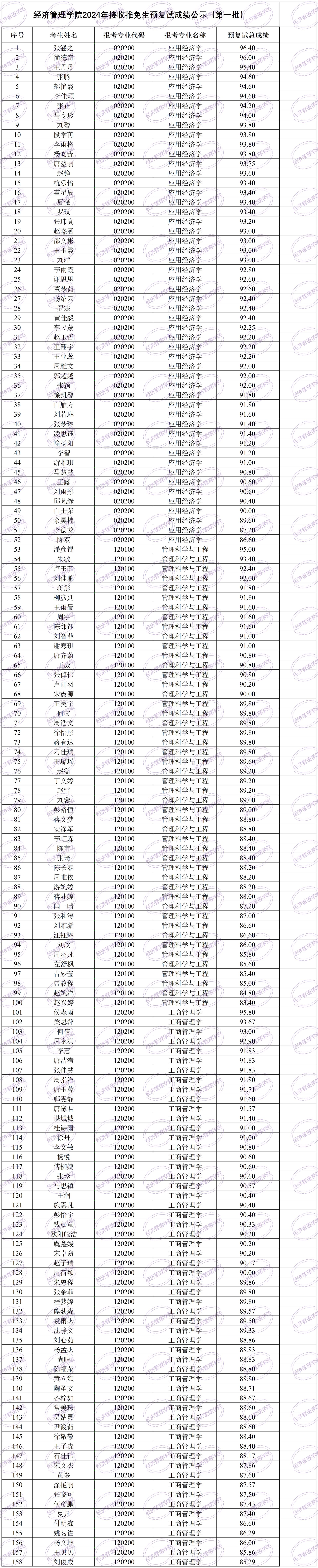 按学校相关文件规定,现对我院2024年接收推免生预复试成绩予以公示(详见附件)。公示期为2023年9月29日—10月3日。公示期内如有异议,请书面申述。联系人:王老师,电话027-67883204,邮箱360655881@qq.com。