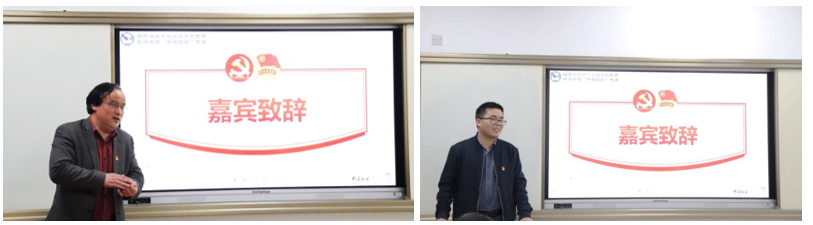 校图书馆馆长徐世球教授(左)、amjs澳金沙门党委副书记李少杰老师(右)为活动致辞
