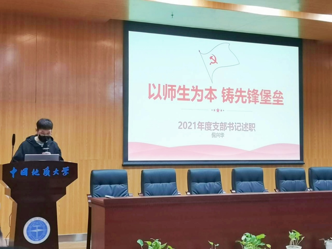 会上,各支部书记结合本研学生党支部工作特点,围绕党支部标准化、规范化建设、党支部特色工作培育、支部战斗堡垒和党员先锋模范作用发挥四个方面详细汇报支部落实“七个有力”情况,并着重查摆党支部工作存在的不足,提出了切实的改进方法。其中,经济学专业本科生党支部作为校级样板党支部培育对象,致力于落实“严在地大校风学风”,将“严在经济”贯穿支部建设和党员教育管理,形成以理想庄严、制度严密、学风严谨的支部工作特色。营销旅管专业本科生党支部则以师生联动、课程思政建设、党班团一体发展作为工作重点,充分结合学科专业特色,形成有效的实践育人机制。