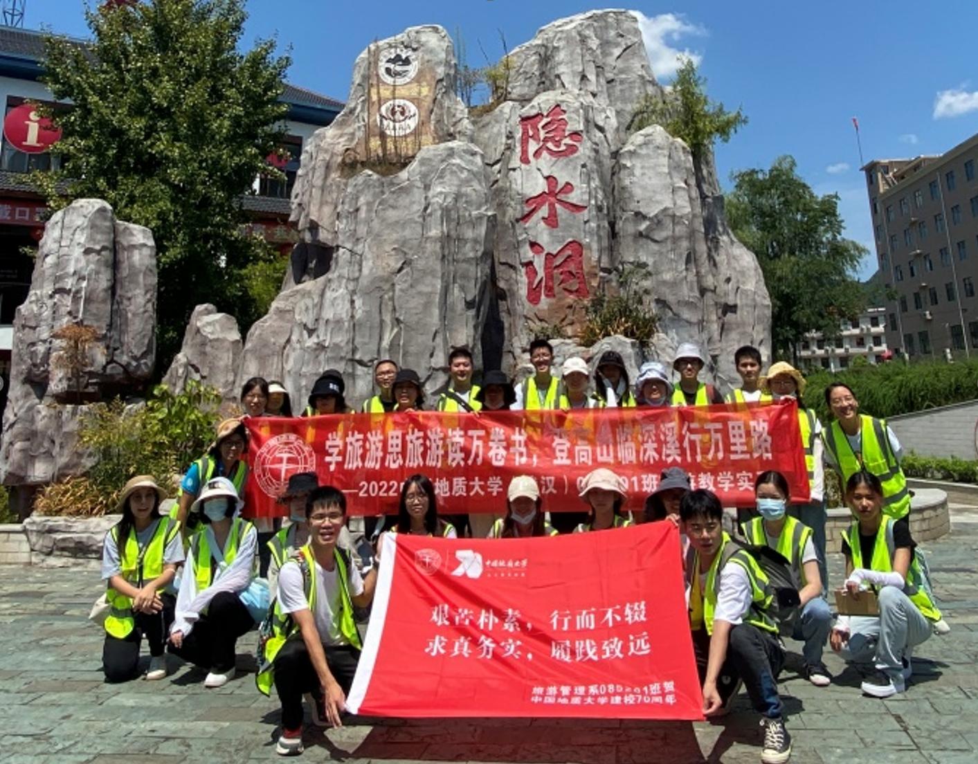 以学习、传承并发扬“艰苦朴素,求真务实”校训精神和amjs澳金沙门的“宽信敏公,经国济民”院训精神作为实习课程思政教学的出发点,结合中国地质大学建校七十周年校庆,方案为本次实习确立了“艰苦朴素,行而不辍;求真务实,履践致远”的实习精神理念,引导同学们要在实习中,积极发扬校训精神,秉承求真,践行务实,在实习实践中理论联系实际,打好专业根基,在旅游成才路上行稳致远。并鼓励实习同学以脚踏实地的实习表现,为中国地质大学建校七十周年献贺。