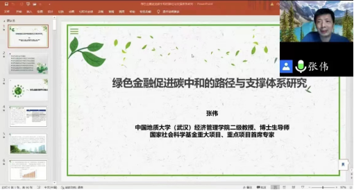 报告结束后,西南林业大学会计学院院长杨洪涛教授对张伟教授的报告给予了高度评价,认为报告既吸收了国内外学术前沿的内容,又融入了自己独特的构思,具有较多的创新之处,对绿色金融促进碳中和将能发挥重要的作用。