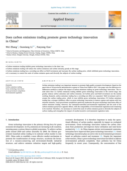 Wei Zhang, Guoxiang Li,Fanyong Guo.Does carbon emissions trading promote green technology innovation in China?[J]. Applied Energy,2022,(315):119012.